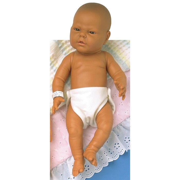 These preemie models are anatomically correct (males have foreskin intact) and show the wrinkling typical of a tiny baby’s skin. Each model comes with a diaper with Velcro fasteners, a hospital identification bracelet, and a birth certificate. 17" long; 1 lb, 10 oz.